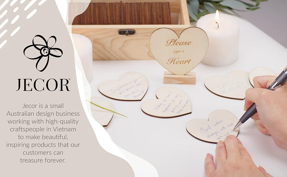 Amazon Com Jecor Alternative Guest Book Box Wedding Guest Book Alternative 62 Large Wooden Hearts Also For Baby Shower Bridal Shower Anniversary Birthday Retirement Funeral Guest Book Alternatives Home Kitchen